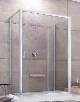BOX PORTA SCORREVOLE FUSION DUE ANTE FISSE E DUE SCORREVOL167/171,4 CROMO CRISTALLO TRASPARENTE H.185