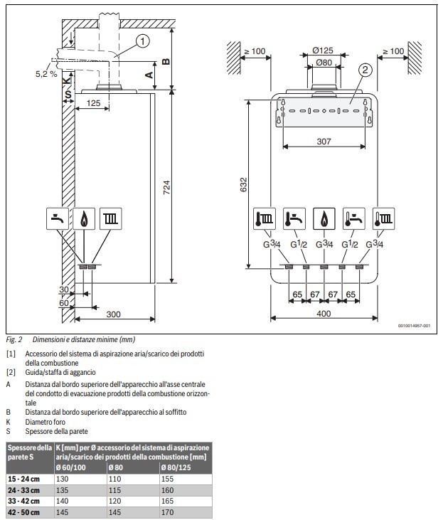 CALDAIA CONDENSAZIONE JUNKERS BOSCH CONDENS 2300 W BIANCA 24/30 KW