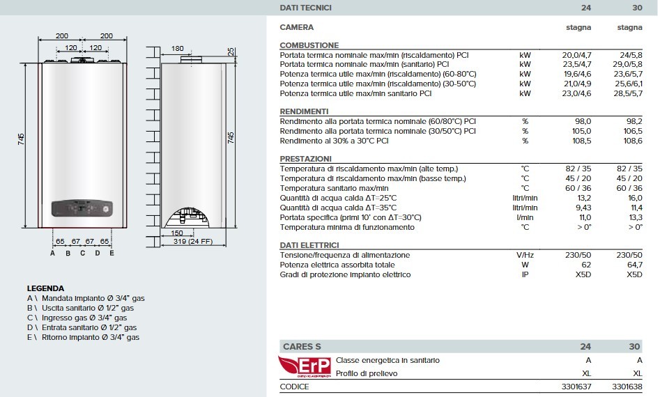 CALDAIA CONDENSAZIONE ARISTON CARES S 30 EU METANO