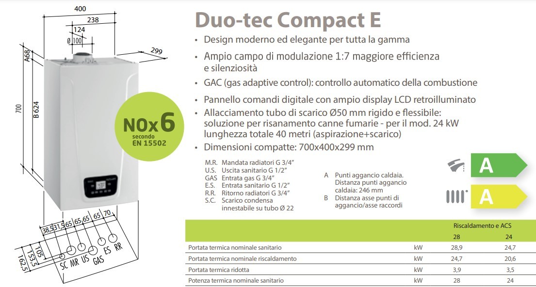 CALDAIA CONDENSAZIONE BAXI DUO-TEC COMPACT E 28 GA ERP KW METANO