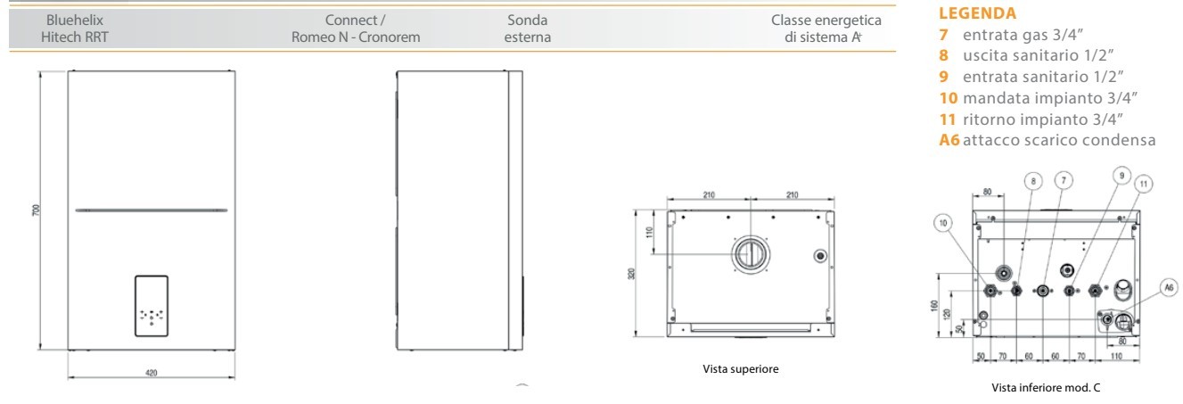 CALDAIA CONDENSAZIONE FERROLI BLUEHELIX HITECH RRT C 24 KW METANO OT4B2AWA