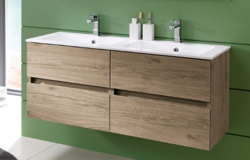 COMPONIBILE DA BAGNO CON LAVABO A DUE VASCHE E BASE SERIE KORA BASE DA120 BIANCO FRASSINATO