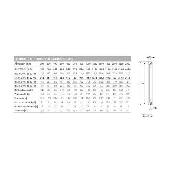 RADIATORE ARDESIA DA 13 EL.INT.800 MM H 856 3 COLONNE AL.1 LAT 3/8 LARG.59,8 PROF.10,7 BIANCO