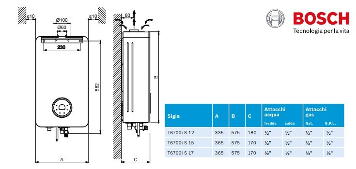SCALDABAGNO A GAS BOSCH THERM 5600 S 12 DV23 INDOOR 12 LT METANO C.S.