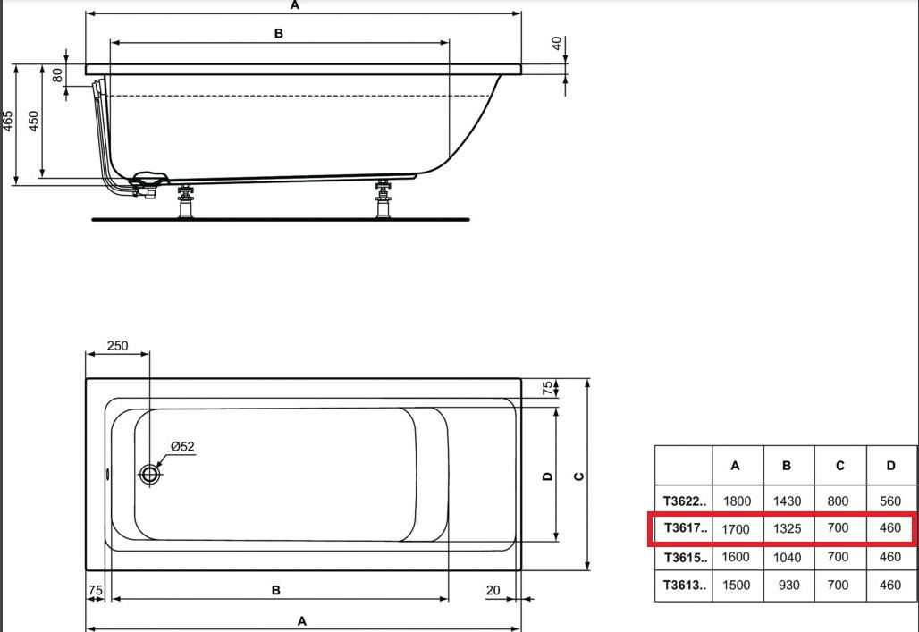 VASCA CONNECT AIR 170 X 70 IDEAL STANDARD METACRILATO BIANC0 T361701